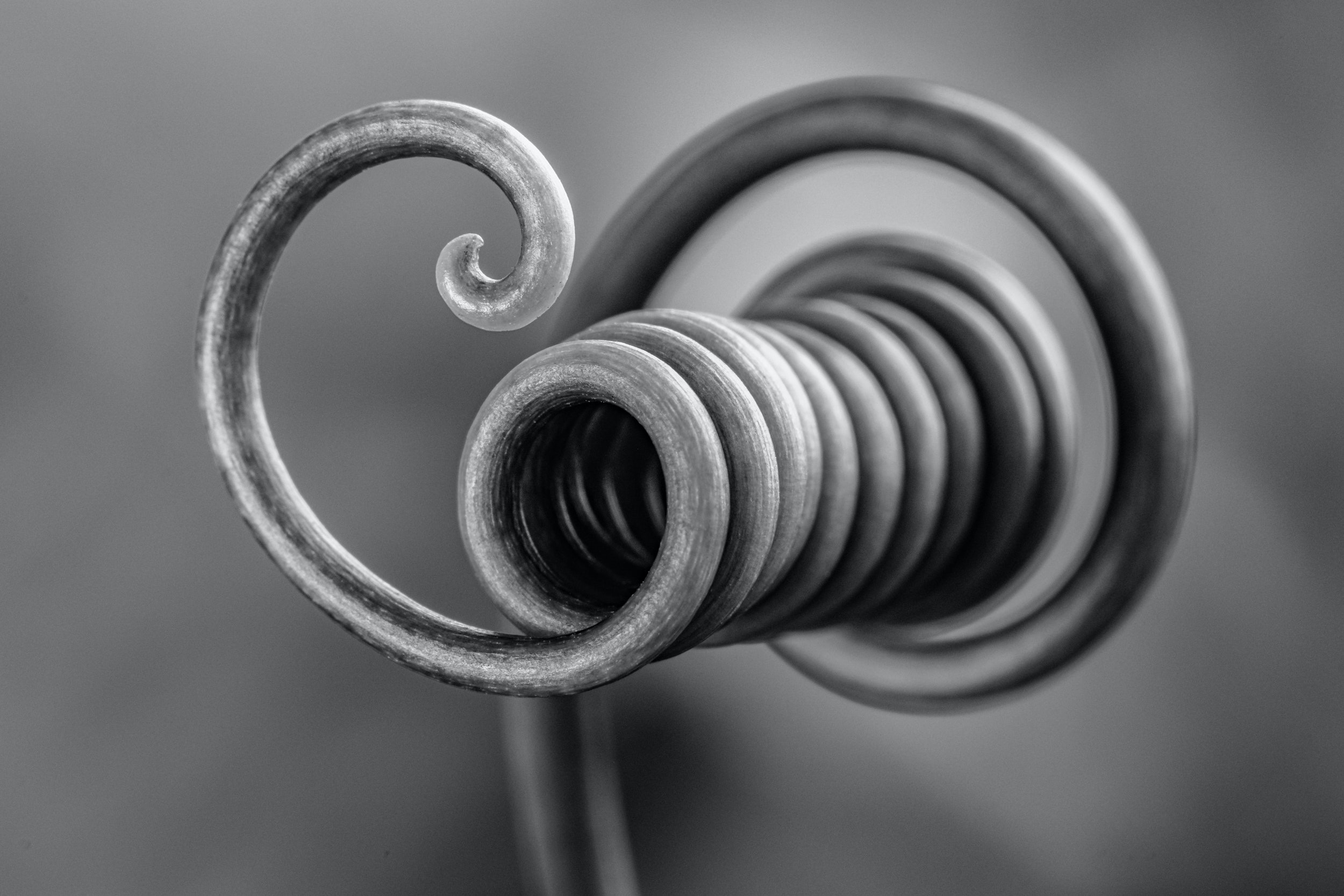 The whole collection was edited in black and white because it only intends to explore the shape and texture of these spiral-shaped filiform structures which, at first glance, may appear to be man-made. I think this image can easily be mistaken for a spiral cable, a wire or even a pipe."