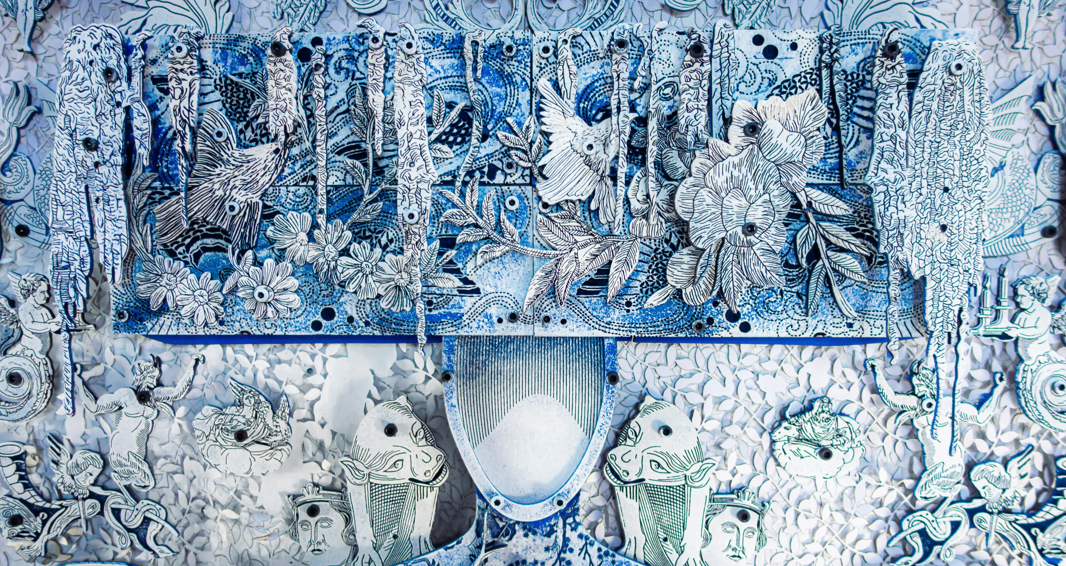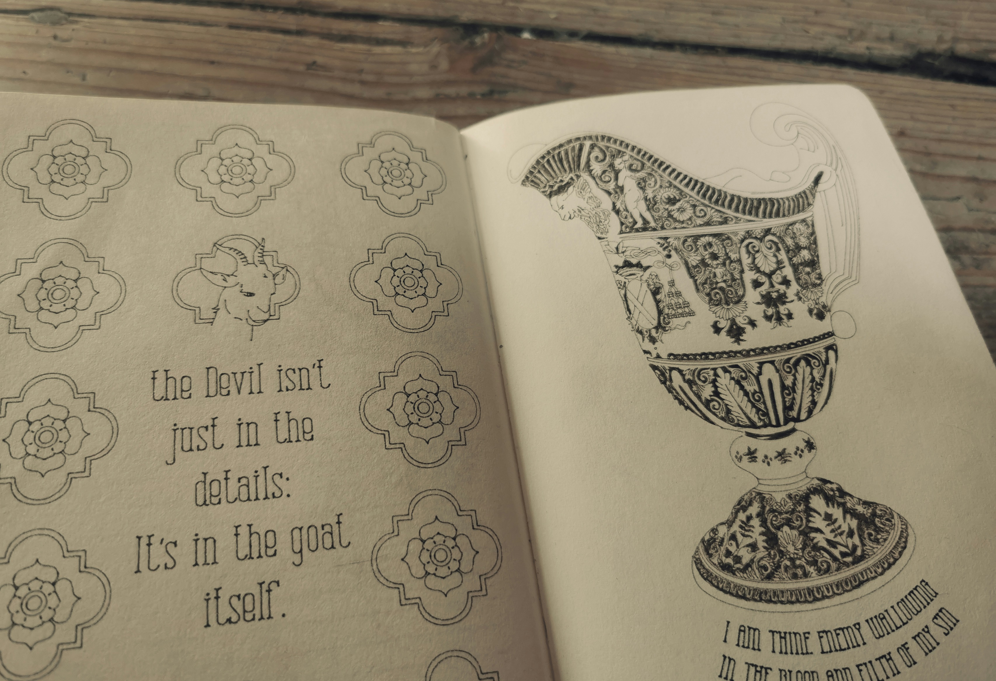 Nabil Nezzar: "I have been making a collection of drawings in a circa 17th Century style, with a rather naive and innocent approach, describing my experience as a child living in a devoted religious family. The illustrations are drawn on a book that resembles a bible, which I find very accurate, although a bit controversial. I am also exploring these drawings further through painting and sculpture."
